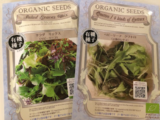 In other grocery news, my husband found an organic grocery store for me today.  Organic items are not very common in Japan and even when you find them, they are super expensive.  I would compare the prices to Whole Foods, where you can find deals if you look and as long as you avoid the deli.  At the store, I found a small seed section and purchased my first Japanese seeds.  I'm excited to grow some lettuce, which I can do easily inside year round.  Now I just need to find a pot and some dirt.